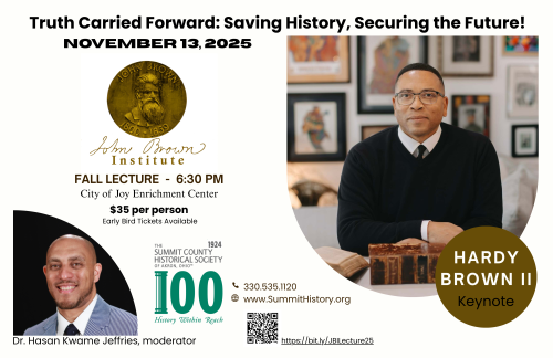 The 3rd annual John Brown Institute Fall Lecture will be held at the City of Joy Enrichment Center at 6:30 p.m. Hardy Brown II will be the keynote speaker and Dr. Hasan Kwame Jeffries, our inaugural speaker, will join us again as moderator. The 2025 theme is Truth Carried Forward: Saving History, Securing the Future! Mr. Brown has an archive of over 15,000 primary resources and his lecture will reveal how these documents tell the story of our theme. A resident of San Bernardino County, CA, Mr. Brown is the Managing Principal and Chief Relationship Officer for Footsteps to Freedom, Inc. Each summer, Brown, his sister and team members bring 400 educators and administrators to Ohio, Michigan and Canada to follow the Underground Railroad routes to freedom in an empathy tour.