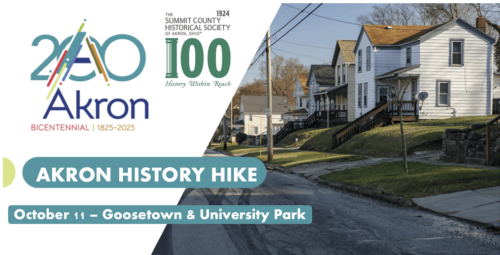 Join Akron at 200 author Charlotte Gintert on an exploratory tour of one of Akron’s oldest legacy neighborhoods, Goosetown. Now a part of the University Park neighborhood, Goosetown has long been a place for new Americans to put down roots and build community. We will be visiting some of the neighborhood’s most interesting landmarks from the 1800s to today while we discuss its fascinating past and its dynamic present. There will be a tour of the Thirsty Dog Brewery at the end of the event.