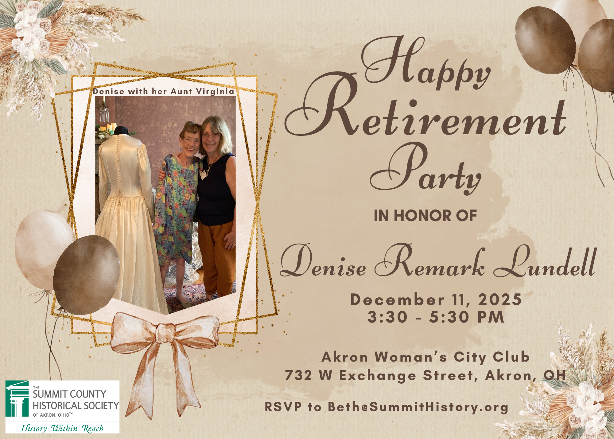 The Society office will be closed the afternoon of December 11th to celebrate the retirement of Denise Remark Lundell.